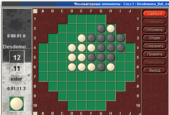 Здесь видно, кого вы можете пригласить на игру. После отправки приглашения, если оппонент (или робот) его принял, начинается непосредственно игра: