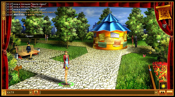 Вы спросите, в чем суть этих сидений везде где только можно? Дело в том, что вы можете видеть остальных посетителей города, которые находятся в нем в данный момент, и вступать с ними в разговоры - в виде чата. Если посетитель уходит из того помещения или раздела города, в котором вы сейчас находитесь, разговор прерывается - так же, как и в обычном живом общении.