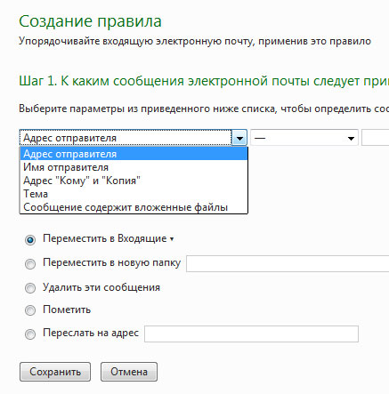 Посмотрел режимы правил (для меня в почте - самое главное) - вроде ничего не добавилось. Все тот же примитив: фильтрация по имени или адресу, теме и наличию вложенных файлов. Из действий - переместить в папку, удалить, пометить флажком, переслать на адрес.