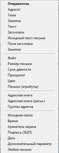 Сравните просто ради хохмы с параметрами отбора в The Bat! и с видами действий.