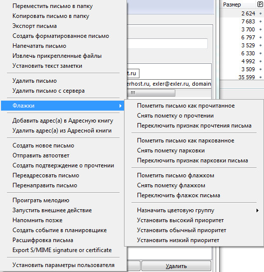 1. Нет возможности настраивать колонки просмотра писем. Там только опция пометки, поле "От кого", иконка прочитано/не прочитано, тема, дата, отметка. Все. Впрочем, можно увидеть размер писем, если вызвать сортировку по размеру. Но если, например, я хочу увидеть колонку размера при другой сортировке, ничего не получится.
