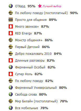 Ну и еще полезно посмотреть на "Рейтинг тарифов", в котором также приводятся данные в процентах о том, насколько этот тариф мог бы подойти именно вам - по детализации звонков.