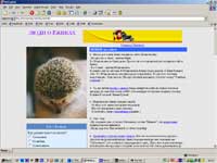 Страничка милая, забавная, и к тому же вполне неплохо сделана. Песни о ежиках, анекдоты о ежиках, рассказы о ежиках, картинки с ежиками, игра "Ежик в тумане", загадки о ежиках и так далее.