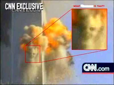 Другие сенсации касались неких мистических "дьявольских" физиономий, якобы возникающих из дыма горящих небоскребов WTC. Причем одно из этих изображений даже опубликовало агентство CNN, которое обычно не склонно использовать  подобные штучки в своих репортажах. Вот одна из этих картинок: