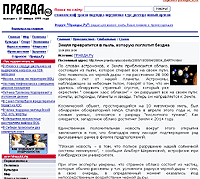Впрочем, и другие российские СМИ недавно совершенно кошмарно облажались, опубликовав (ссылка ведет на газету "Правда", как и встарь прекрасно оправдывающую свое оксиморонистое название) пылевую пургу с американского стебового сайта www.weeklyworldnews.com, причем наши журналисты приняли эту хохму за чистую монету...