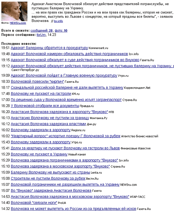 А вы говорите - выборы... Какие, нафик, выборы, когда на следующий же день после объявления результатов голосования весь мир содрогнулся перед лицом новой страшной трагедии, в которой жесточайшим образом были попраны не только права человека и гражданина, но и права балерины! К счастью, нашлось у нас совсем чуть-чуть действительно независимых средств массовой информации, которые, презрев все возможные неприятности, все-таки нашли в себе силы поведать миру об этом возмутительном факте. Вот здесь вы увидите хронику Трагедии практически поминутно...