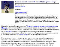Леха Андреев на страницах "Нетоскопа" опубликовал статью, в которой долбает нынешнюю Национальную Интернет Премию (Интел перестал спонсировать Премию, поэтому из премии людей интеловской национальности она стала просто национальной; по какому праву - не очень понятно, но они себя так называют - национальная; скромно, но со вкусом). Весьма за дело, кстати, долбает. И прошлая-то премия вызывала массу нареканий, а в нынешней даже на старте допущено столько ляпов, что это все грозит превратиться в откровенную профанацию.