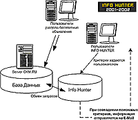 Что интересно, сделано там все очень грамотно. Действительно - целый набор всяких интересных сервисов, причем, как это принято в Интернете, бесплатных. Мощная электронная доска объявлений с поиском, отбором, возможностью отправки информации на любой источник - ICQ, e-mail и даже SMS. Фотосервис, с помощью которого вы можете заказать у профессионалов фотографирование и оцифровку вашего товара, предлагаемого к продаже. Также поиск людей, бартер услуг плюс довольно оригинальный сервис, который разработчики сайта назвали "Охотник за информацией". Система, кстати, довольно интересная. Вы заходите на страницу  сервиса, нацеливаете охотника в конкретный раздел, задаете дополнительные критерии для отбора: формируете запрос, критерий цены, варианты отклонения цены и так далее, после чего охотник будет отслеживать все, что вы ему поручили, и высылать данные указанным вами способом связи.