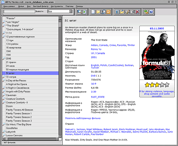 Ну и в-третьих, добавлена весьма нужная возможность изменять стиль просмотра фильмов в базе на основе HTML-шаблонов - это просто блеск! Теперь каталог может выглядеть именно так, как вам хочется! Плюс - на выбор дается несколько уже настроенных шаблонов, например, вот такой: