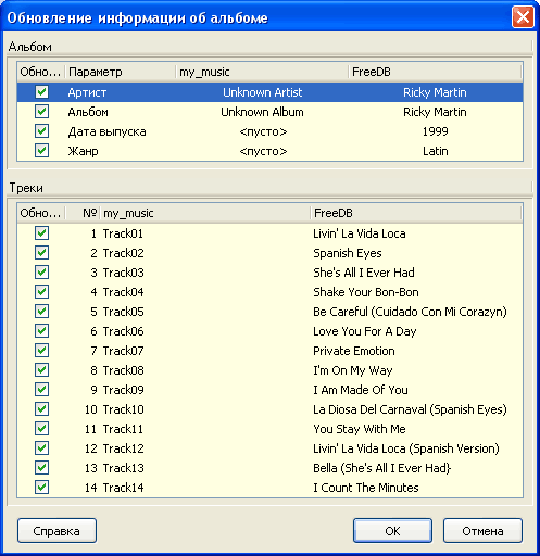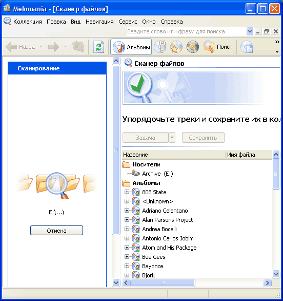 Можно запустить сканирование аудиодиска в приводе, и "Меломания" сама считает исполнителя и названия треков. Если эта информация недоступна, тогда она скачает ее из Интернета с FreeDB.