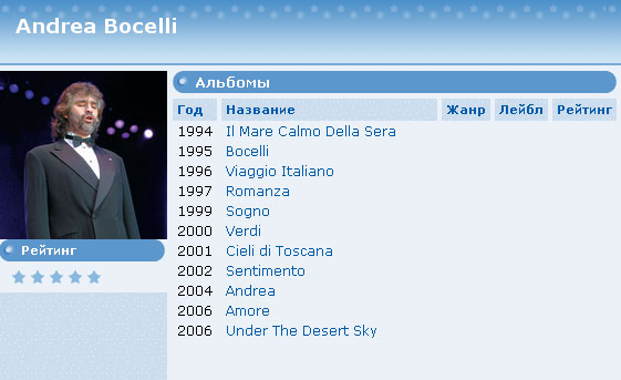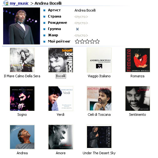 В результате подборка альбомов исполнителя (ансамбля) выглядит весьма информативно: