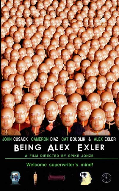 Знаете фильм "Быть Джоном Малковичем"? Да знаете, конечно... Так вот, Роберт Демкин по мотивам обложки кассеты этого фильма сотворил коллаж, который называется "Being Alex Exler". Дурдом, конечно, но смешно. И сделано классно. Полюбуйтесь: