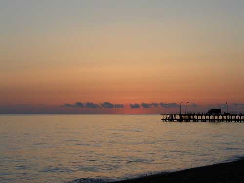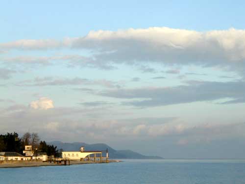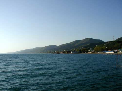 Вид с моря на Лазаревку под вечер