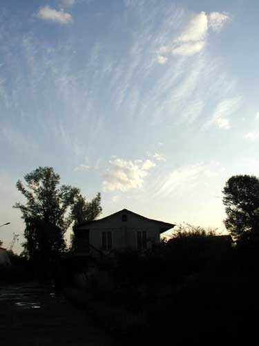 Забавные облачка вечером. Это заброшенный кемпинг. Прям сталкерская зона