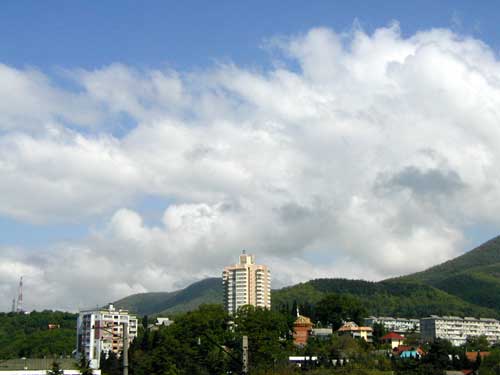 А вот это уже чистая Лазаревка. Дом в центре - газпромовское общежитие. Облака сверху - пока еще ничейные