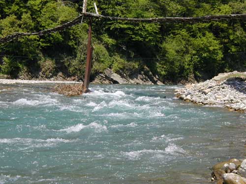 Горная речка. Кстати, этот подвесной мостик описан в рассказе "Ужин в черкесском ауле"