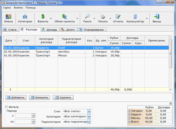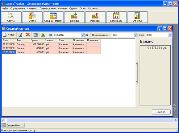 Ну нужно нагромождений счетов, проводок и так далее. Программа не для бухгалтеров - просто учет домашних финансов: фиксация прихода и расхода по категориям, получение отчетов в различных видах.