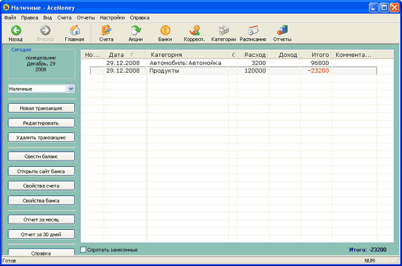 P.S. AceMoney позволяет добавлять категорию в момент занесения транзакции(редактировать, удалять - верно написали, не может). Просто пишите несуществующую категорию - и она добавится.