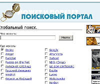 Сервис, разумеется, совсем не новый - подобных страничек в Интернете - море разливанное, - однако сделана страничка весьма прилично и со вкусом, поэтому я ее вам (и себе) рекомендую. Кроме обычного поиска там еще фигурирует поиск файлов, книг и поиск по сайту Support Homeplace (это сайт, на котором представлен "Поисковый портал"; кстати, сайт довольно интересный).