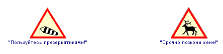 Но это еще что! На сайте есть целая песня "Гоп стоп", великолепно проиллюстрированная дорожными знаками. Я ее здесь приводить не буду - загляните на сайт и посмотрите. Но я, если честно, был в восхищении. Отличная хохма.