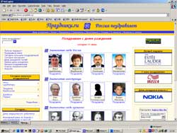 "Праздники.Ру" специализируются на поздравлениях всяких известных и не очень людей, родившихся в этот день. Например, заходим мы на сайт и видим, что сегодня (17 июня) - день рождения Ильи Цымбаларя, Людмилы Вербицкой и Василия Кислицина. И каждого этого человека можно поздравить, отправив ему открытку на e-mail (если человек согласен получать подобные поздравления) или оставив открытку на сайте, а человеку на e-mail придет об этом уведомление (если он не согласен получать на e-mail открытки).