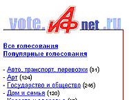 Как известно, недавно компания "Нетбридж" закрыла принадлежащий ей сервис бесплатных голосований Voting.Ru. А жаль, ведь этим сервисом многие пользовались, особенно те вебмастера, которые не в полной мере овладели искусством скриптования. На всякий случай напоминаю, что если вам нужны голосовалки на сайте (а они всегда пригодятся), то вы по-прежнему можете использовать бесплатный сервис голосований, доступный по адресу vote.aifnet.ru. Тем более, что этот сервис уже давно предлагает намного бОльшие возможности, чем недавно ставший покойным voting.ru.
