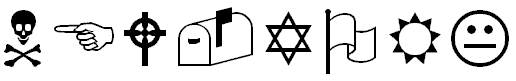 Я долго их все переводил в Windings, но получал только знаки зодиаков и совершенно невнятные символы, которые ну никак не указывали ни на самолеты, ни на черепа, ни даже на евреев. Похоже, мы опять стали жертвой какого-то шутника.