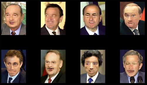 Можно также поизмываться над членами большой восьмерки, поменяв у них всякие члены (глаза, носы и рты) друг с другом. Вот угадайте, где здесь Путин: