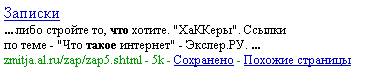 Так что, как видите, новый движок действительно показывает отличные результаты. Что бы еще спросить? Вот что спросим: "что такое Яндекс?". Надо же посмотреть, как они сами к себе относятся... А-а-а-а, я так и знал. Смотрите, что нам выдает в качестве первой ссылки: