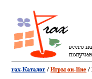 Хоть жара и спадает, однако еженедельный приз победителю - кружка классного холодного пива или коктейль для дам - на игровом онлайновом сервере Games.Rax.Ru сохраняет свою актуальность. Сервер, кстати, развивается все дальше и дальше. Теперь там не только всякие дурачки, болваны, крестики-нолики и прочие низкоинтеллектуальные забавы, но и онлайновые ШАХМАТЫ (я требовал, чтобы в качестве приза выдавали не плебейское пиво, а бокал хорошего вина или благородного вискаря, - обещали подумать), а также самая интеллектуальная игра всех времен и столов - ДОМИНО! Конечно, в онлайне несколько сложно треснуть по столу так, как того требуют эстетические концепции этой игры, но зато у вас теперь под рукой всегда есть партнеры. Интернет - великая штука, точно вам говорю!