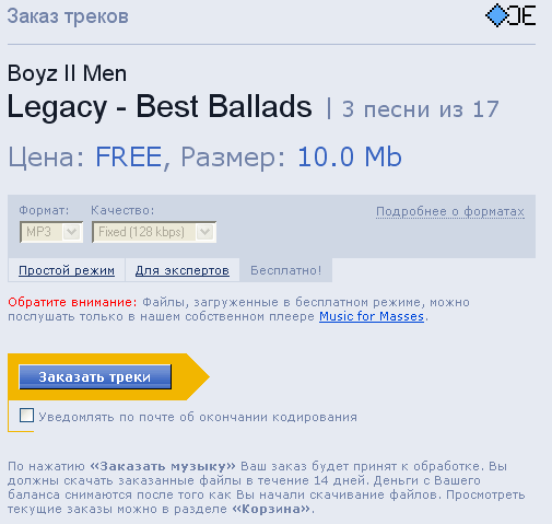 после чего - кнопку "Заказать треки".