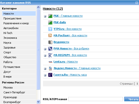 В разделе "Новости" вам предоставляется целый каталог RSS-потоков различных новостных и прочих (аналитика, обзоры, развлечения и так далее) сайтов, разбитых по категориям, из которых легко можно сформировать набор инфоблоков того, что вам интересно: