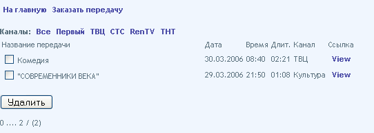 Регистрируетесь (бесплатно), входите в свой личный кабинет, после чего вам доступны следующие возможности: заказать запись любой передачи на ближайшую неделю из 8 центральных телеканалов: "Первый", ТВЦ, СТС, Ren TV, ТНТ, "Россия", "Спорт" и "Культура". Передачи можно заказывать и прошлые - не проблема. Записанные передачи появляются в вашем списке, где можно нажать на специальную ссылочку и их посмотреть.