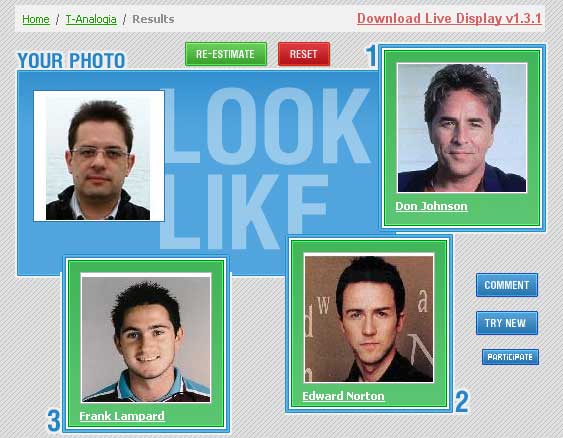 Далее я попробовал использовать, как там написано, новый сервис T-Analogia, позволяющий, дескать, добиваться невиданного сходства в результате индивидуальной настройки системы под себя. Регистрация на этом сервисе требует значительного времени, потому что там нужно заполнять практически все поля (включая невероятно интимные), причем обязательно латинскими буквами, но об этом нигде не говорится, поэтому вас сначала раз пять пошлют, а потом вы все-таки сможете зарегистрироваться.
