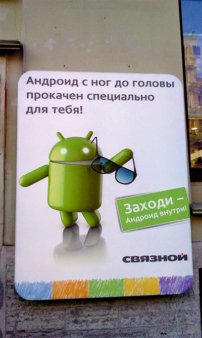 "Андроид с ног до головы прокачен специально для тебя. Заходи - Андроид внутри. Связной." - Чой то, не согласен я 😉