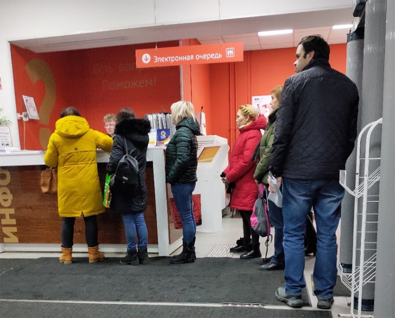 На табличке написано "Электронная очередь", замечает Мямлин, а по сути она - галимая аналоговая.