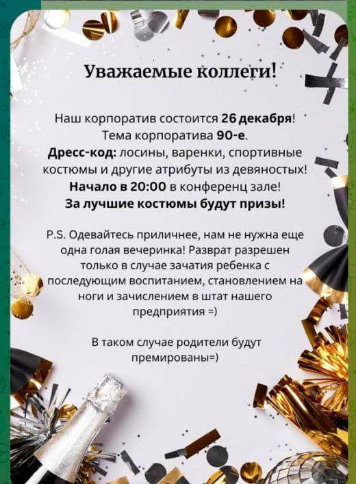 Веган прислал требования к поведению на корпоративе на его работе.