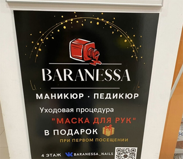 Sad Smally рекомендует заглянуть на маник и педик вот сюда. Почему, вы спросите, "БарАнесса", а не "БарОнесса"? Так она не аристократка, она просто любит по барам бухнуть. А если при первом посещении закажете уходовую процедуру "Маска для рук", то вам в подарок вручат красиво перевязанную картонную коробку - все это выглядит очень многообещающе!