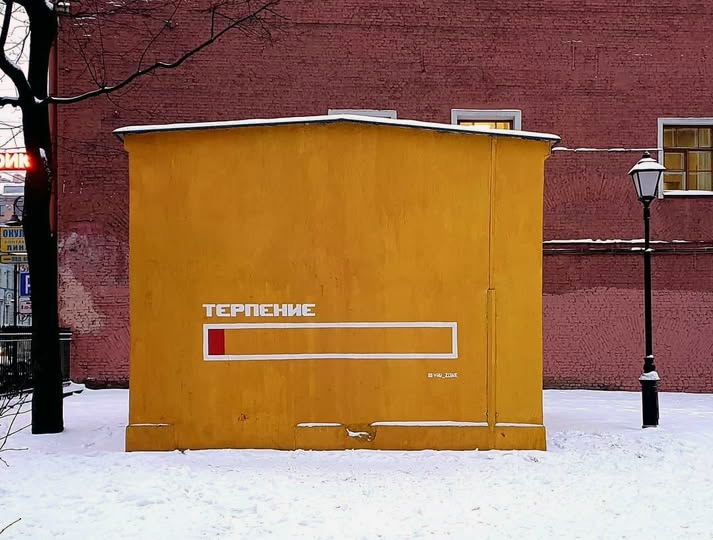 А просто хороший стрит-арт. Известно кем сделанный - это творческая группа "Явь". Литейный, Питер. Работа продержалась 9 часов, закрасили коммунальщики.