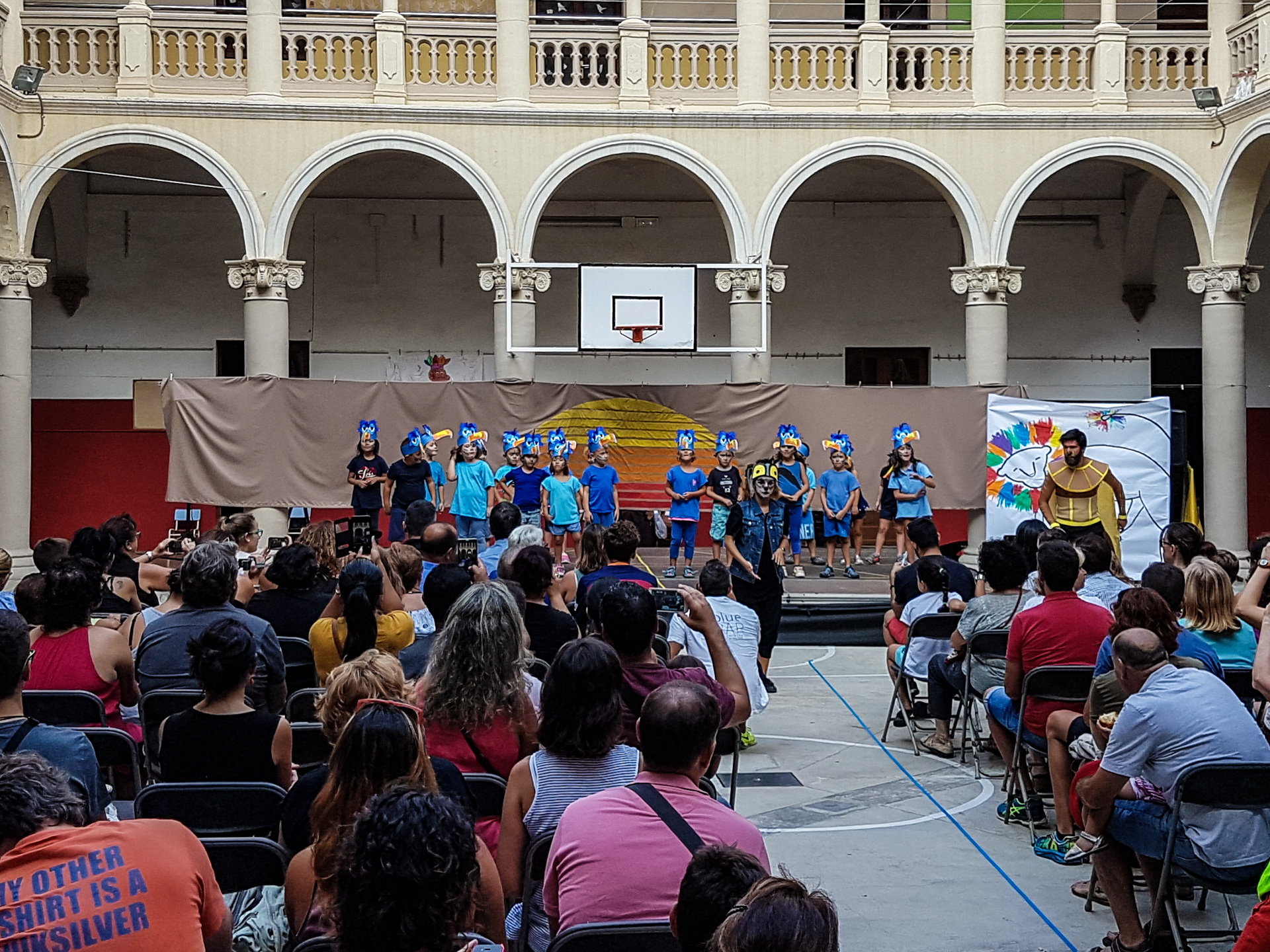 P.S. Ребенок в августе ходил в ту же школу в летний лагерь. Там дети своими силами написали и поставили мюзикл "Король-лев". Вчера показывали. Получилось здорово, особенно танцы. И участвовали в этом все - от самых мелких до самых старших. Вот несколько кадров.