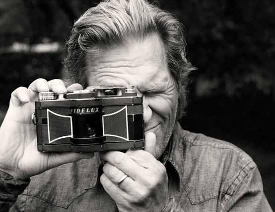 Просто деталь. Бриджес много лет увлекается пленочной фотографией, причем пользуется не самой простой камерой, панорамный 120мм Widelux, вроде бы даже обновляет, когда новая модель выходит. В сети много фото на этот панорамник во время съемок.