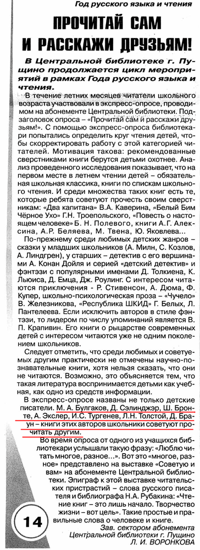 Максим прислал забавную заметку из газеты "Пущинская среда". Толстой, Тургенев и Браун, короче говоря, отдыхают ;)