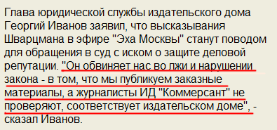 В "Ведомостях" заметка о скандале с "Утконосом" - «Утконос» пошел вразнос. Последний абзац:
