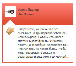 Понятно, что они просто ссылаются на мою рецензию, перепечатанную на сайте "Эха" (и спасибо, что хоть так). Но я подумал, что правильно запретил "Эху" перепечатывать мои рецензии. А то получается, что я какой-то парень с "Эха". А я вовсе не с "Эха".