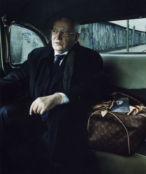 Горбачев снялся в рекламе сумок "Луи Вюиттон". На фоне Берлинской стены. Говорят, что Горби согласился на это только после того, как "Вюиттон" перевел крупную сумму денег в его благотворительный фонд - то есть это сделано типа как не за деньги, а за благотворительность. Я не очень понимаю, как нормальные мужчины, а вовсе даже не визажисты по сексуальной ориентации, могут рекламировать эти сумки, но Горби осуждать не берусь - я его слишком для этого уважаю. Кроме того, все-таки благотворительность - это тоже нужно учитывать.