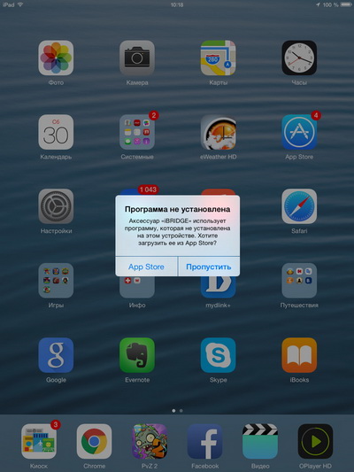 При подключении к айфону-айпэду устройство предлагает установить бесплатную программы, с помощью которой можно будет пользоваться этим гаджетом.