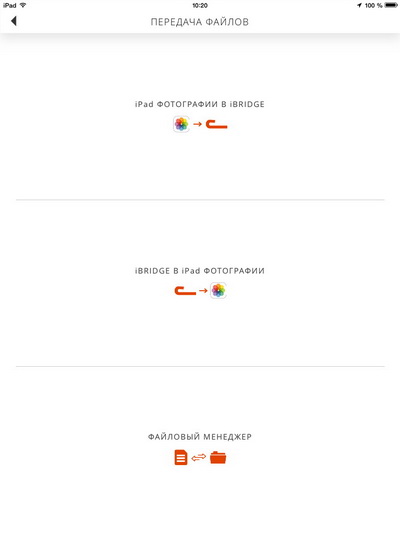 Интерфейс у программы очень простой: передача файлов, просмотр контента и работа с камерой, при которой запись ведется прямо на это устройство.