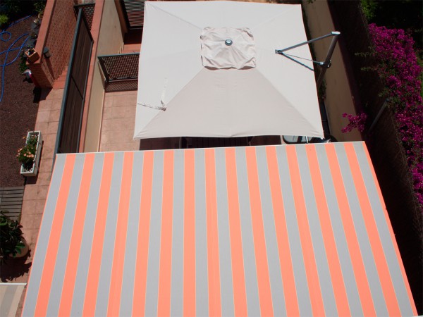 Матрас на переднем плане - это маркиза (здесь это называется тольдес) на электроприводе, которая затеняет площадку перед входом.