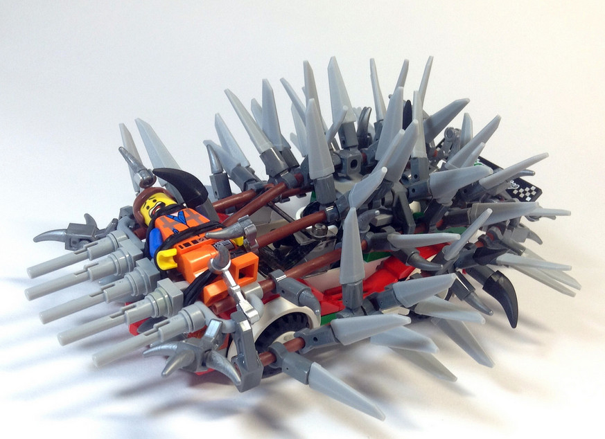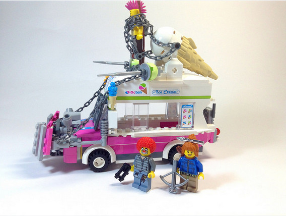 Сделанные из "Лего". Очень забавно. Я бы себе такой наборчик купил бы, да. Еще хорошо бы персонажей оттуда в лего-исполнении.