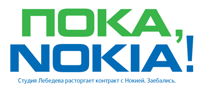 Оставив в стороне морально-этический фактор вопроса - такие эскапады выглядели бы неприлично даже для студии Васи Пупкина, - из надписи можно сделать вывод, что Nokia заколебала Студию, и Студия послала Nokia на.